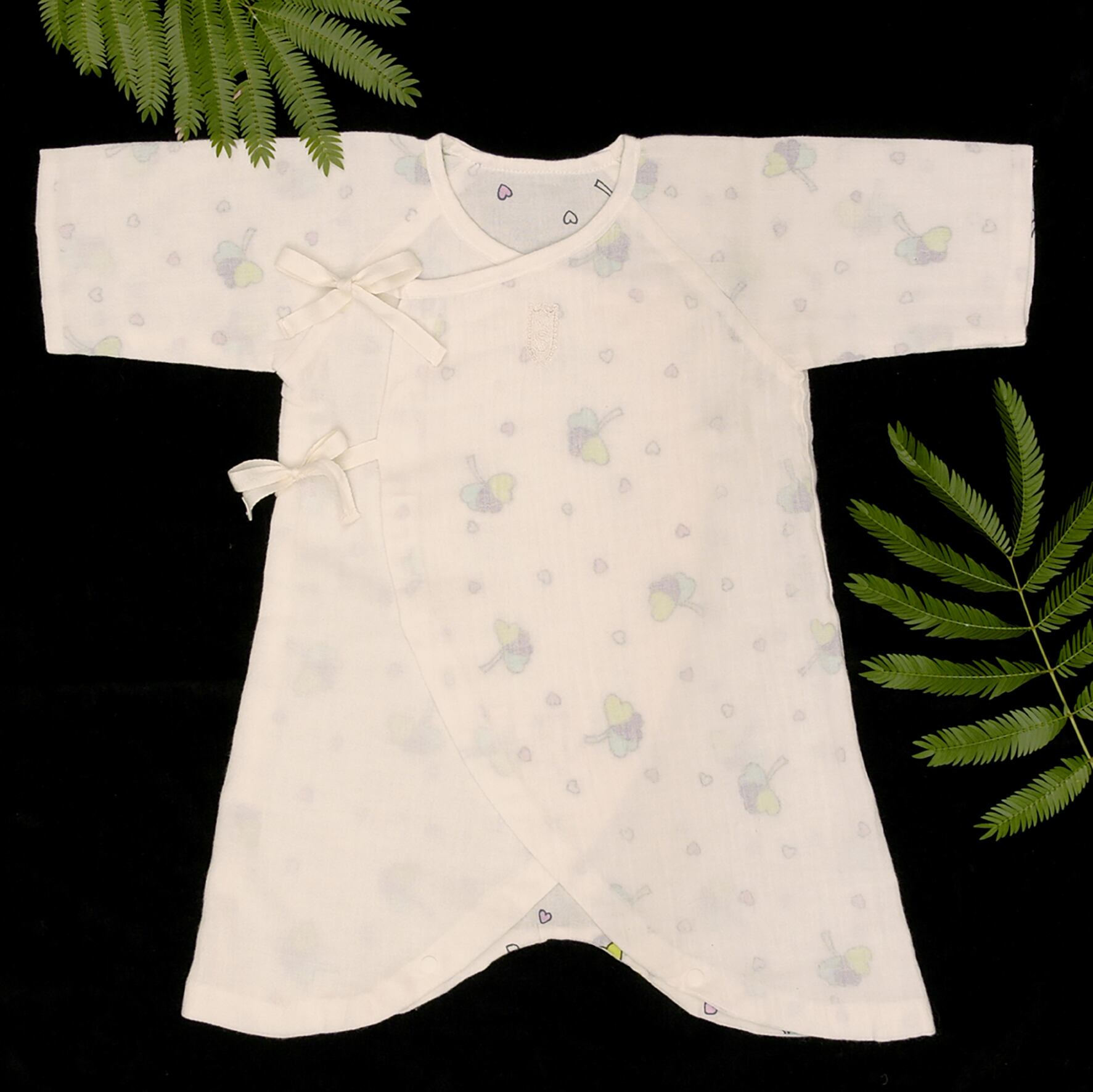 A:新生児の赤ちゃんを寝たまま無理なく着せることが出来る着物タイプの打ち合わせです。