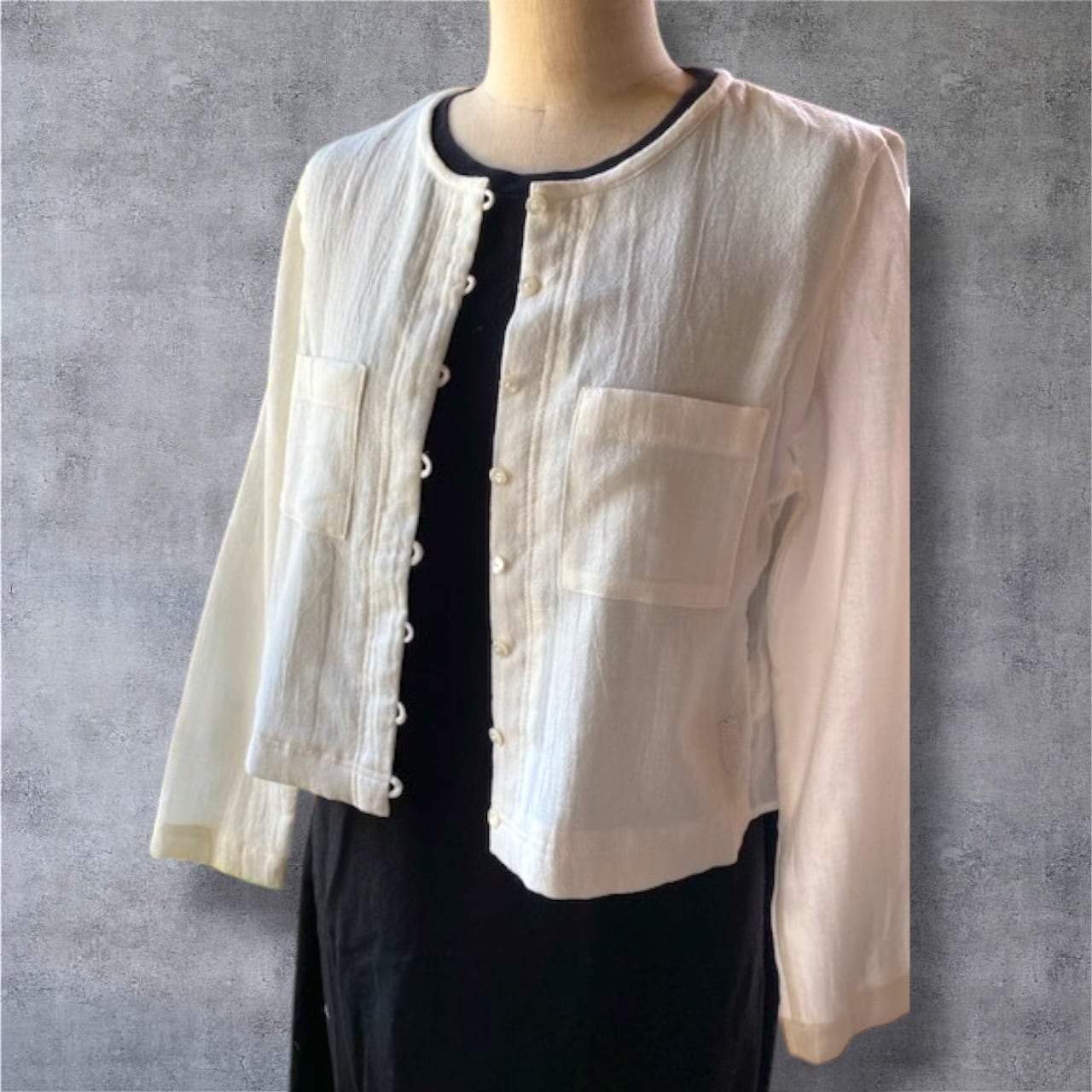 前身頃はガーゼ二枚仕立て、袖と後ろ身頃はガーゼ一枚仕立ての